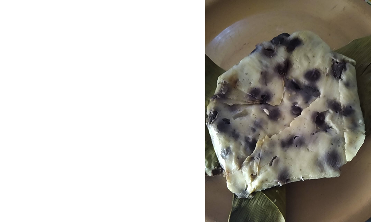 Este tamal se caracteriza por llevar frijoles enteros cocidos entre la masa cocida.