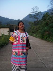 El traje de la mujer mazateca está conformado por el huipil, la enahua, un ceñidor, el reboso y sus dos trenzas.
